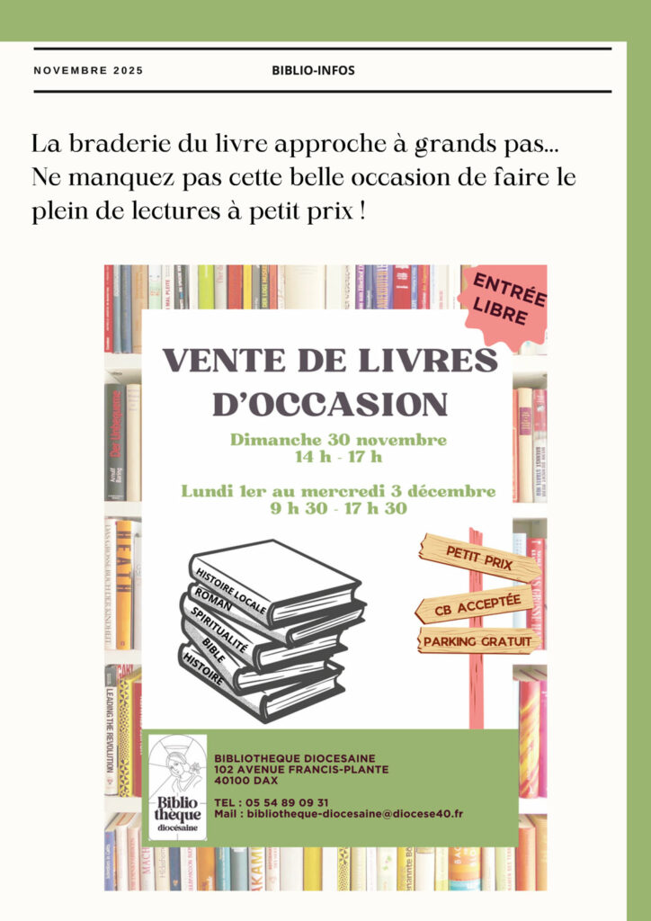 📩 Intéressé(e) ? Contactez-nous : 05 54 89 09 31 / bibliotheque-diocesaine@diocese40.fr ou passez nous voir à la bibliothèque.