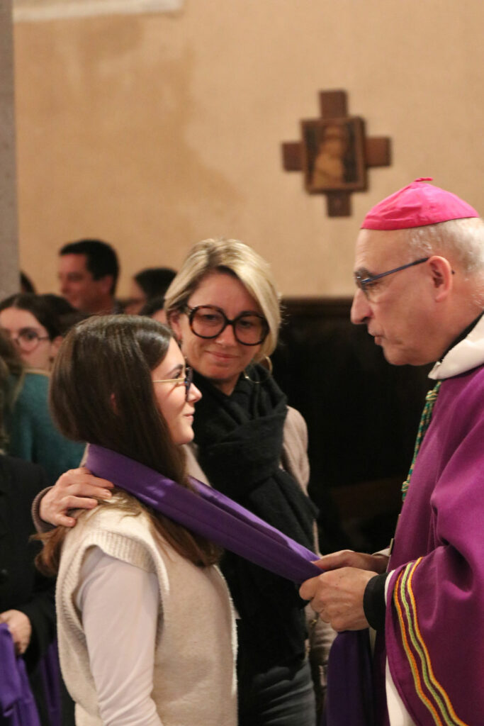 À 18 heures, à l’église de Saint-Jean-d’Août et avec l’assemblée paroissiale, ils ont vécu la célébration de l’appel décisif au cours de laquelle monseigneur Souchu, notre évêque d’aire et Dax les a appelé officiellement à recevoir les sacrements et leur a remis l’écharpe violette, signe de leur volonté de conversion pendant le temps du Carême.
