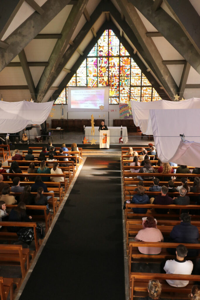 Quelle grâce, quelle joie de voir ces jeunes réunis et heureux de cheminer vers les sacrements ! Merci aux accompagnateurs qui cheminent avec eux depuis 2 ans environ. Merci aux parrains et marraines d’avoir accepté de les soutenir dans leur démarche et de témoigner de leur foi. Merci aux parents qui ont accepté que leur adolescent chemine vers les sacrements de la vie chrétienne.