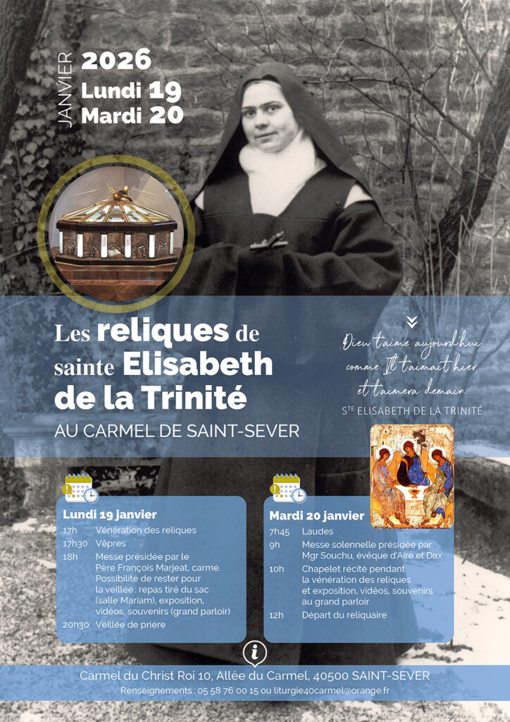 Les reliques de sainte Élisabeth de la Trinité pérégrinent dans les Carmels du Sud Ouest et seront à Saint-Sever les 19 et 20 janvier 2026
